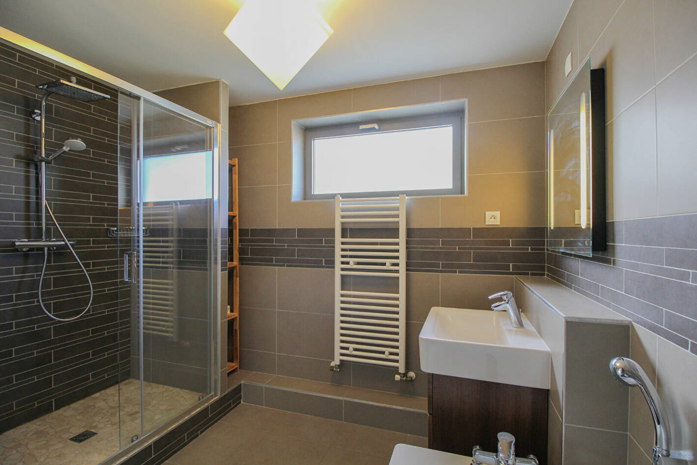 Au niveau supérieur, une suite parentale avec salle de bain, douche, dressing, partie bureau et WC.