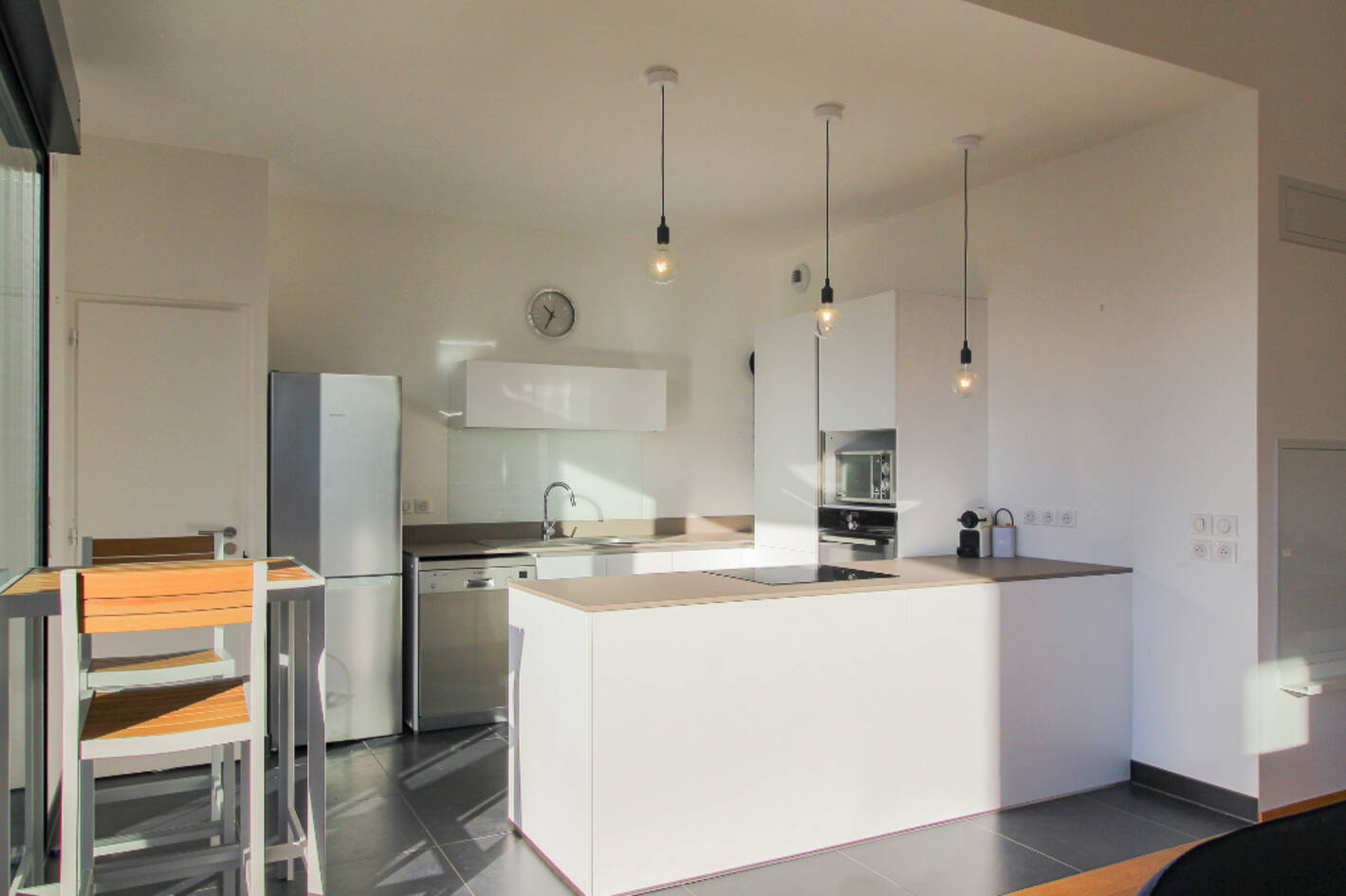 La pièce de vie de 47 m² avec cuisine ouverte donne sur une terrasse de 82 m² orientée Sud-Ouest et sans vis à vis.