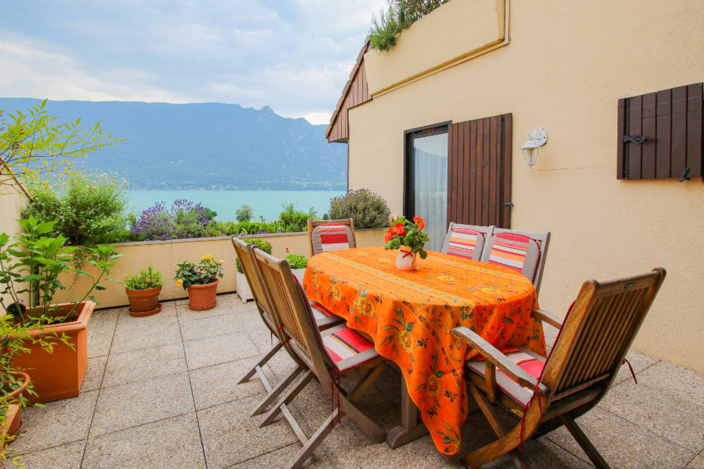 Appartement T3 d'environ 98m2 au sol avec un salon-cuisine donnant sur une terrasse côté lac.