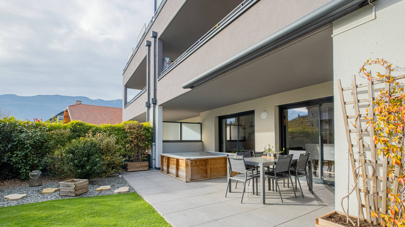 Nouveauté, secteur Grand Port T3 de 72 m2 avec son jardin de 115 m2 et situé à 2 minutes à pied du lac du Bourget.