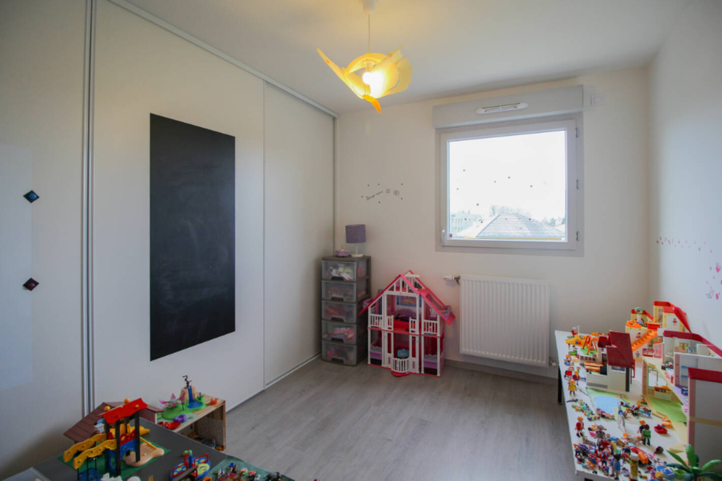 Un séjour-cuisine de 55m2, une suite parentale avec salle d'eau, buanderie et dressing, deux chambres individuelles, une salle d'eau et deux WC.