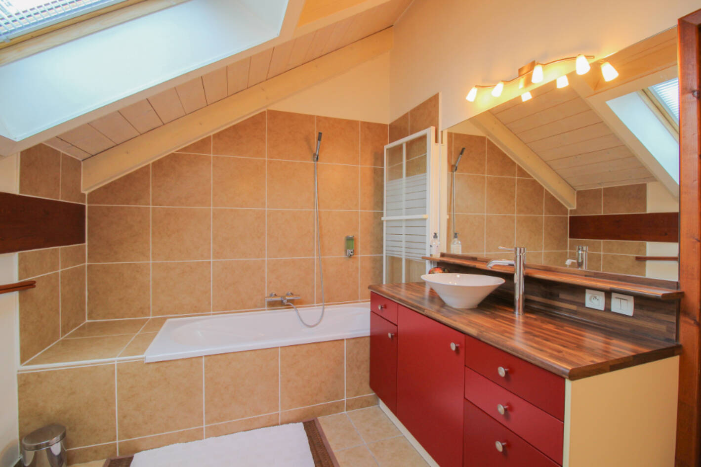 Enfin, au deuxième étage, deux chambres avec grand placards, une salle de bains avec WC, un dressing