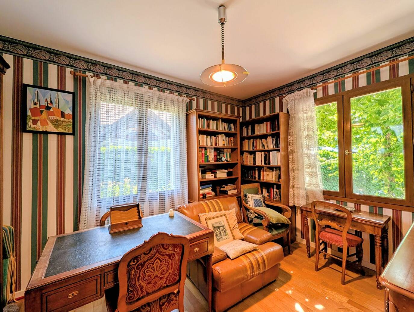 La maison dispose également d'un sous-sol complet comprenant deux caves, des espaces de rangement, ainsi qu'un grand garage pouvant accueillir deux véhicules.