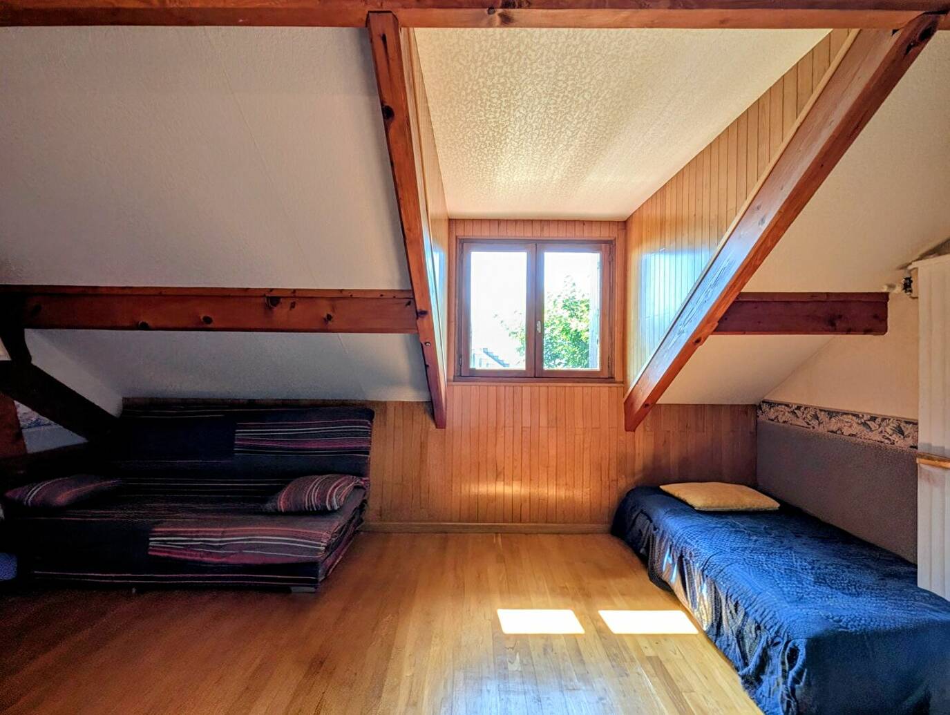 A l'étage, l'espace nuit propose trois chambres supplémentaires, une salle de bain comprenant douche et baignoire d'angle, ainsi qu'un second WC séparé.