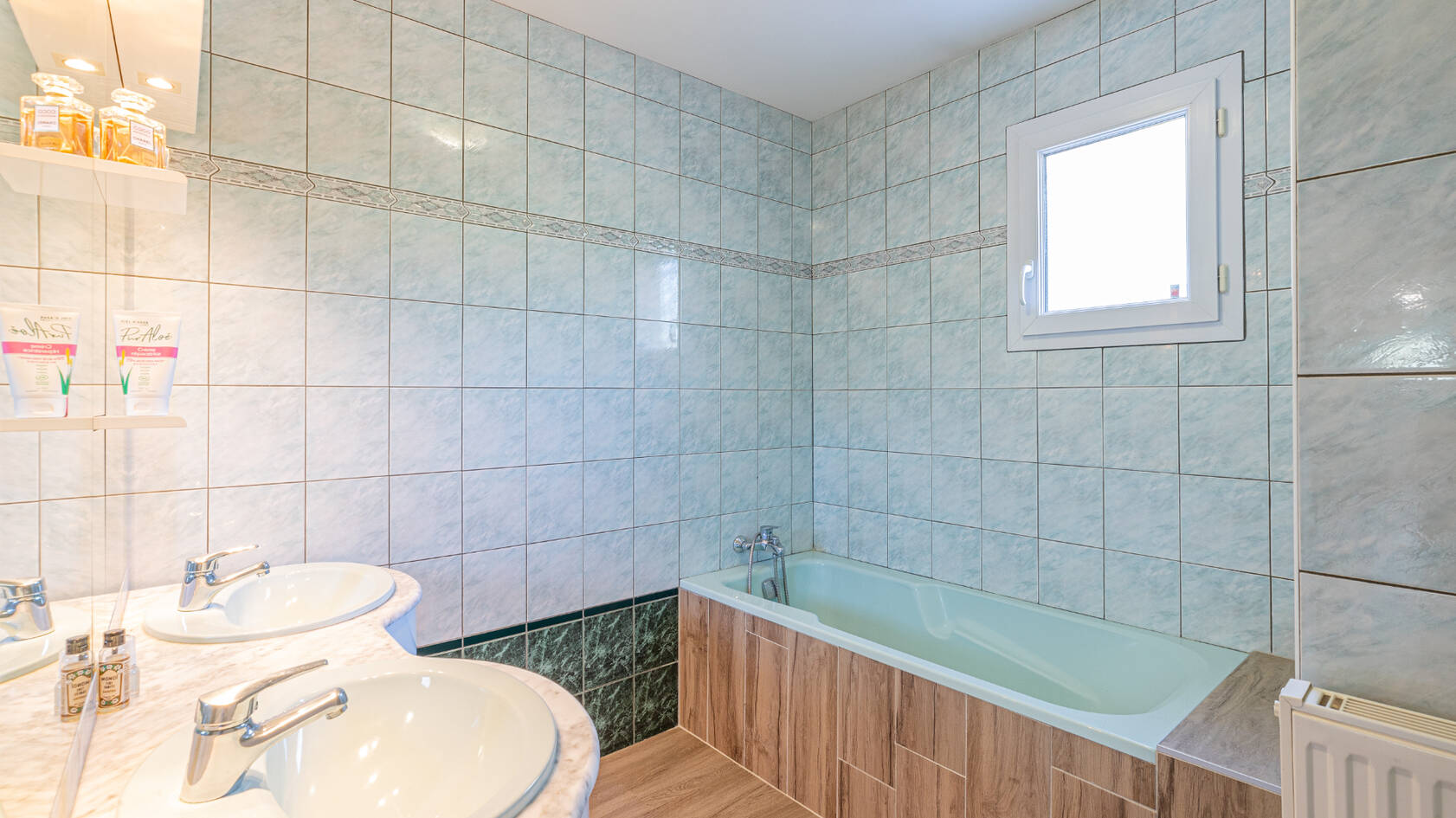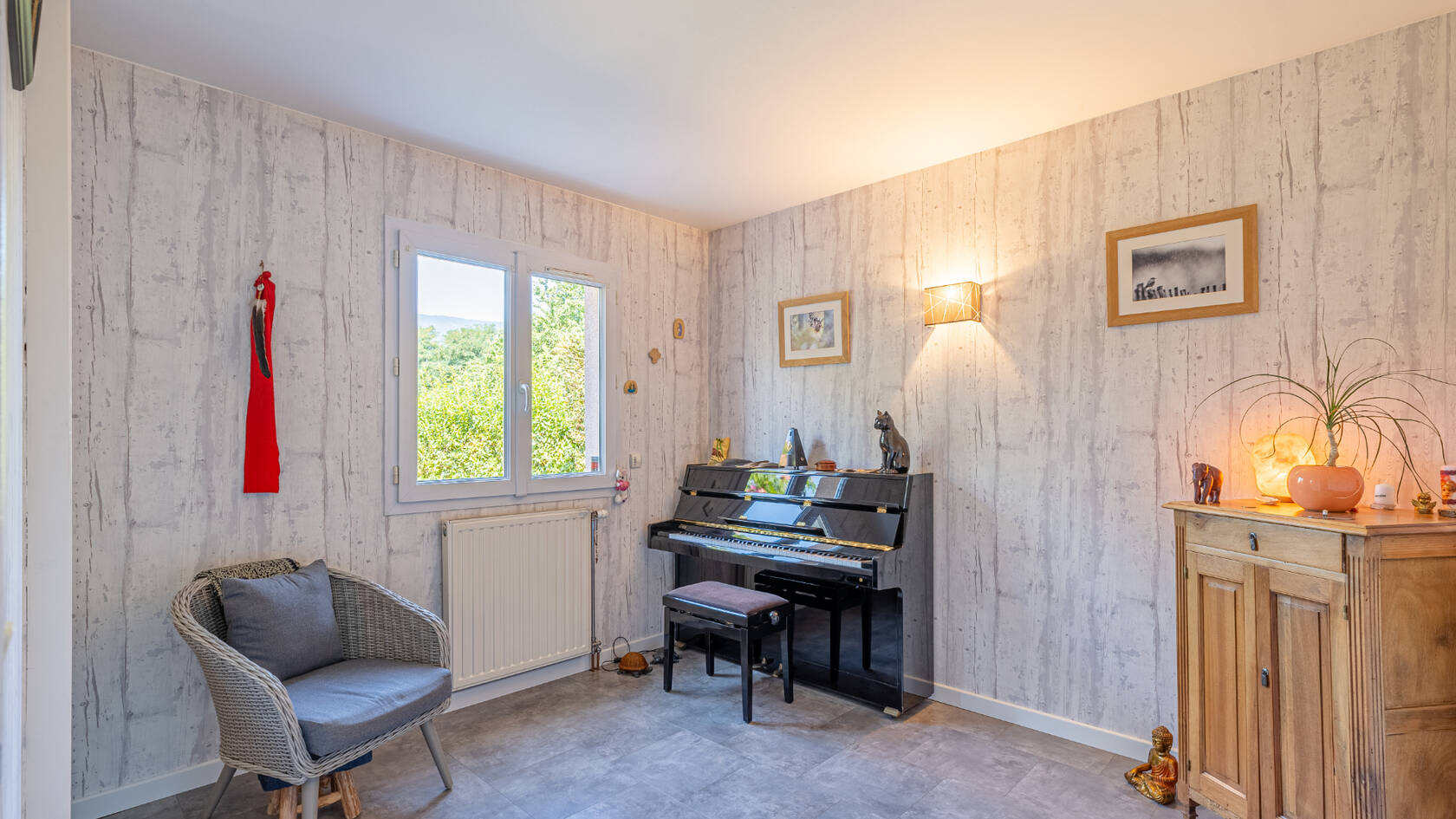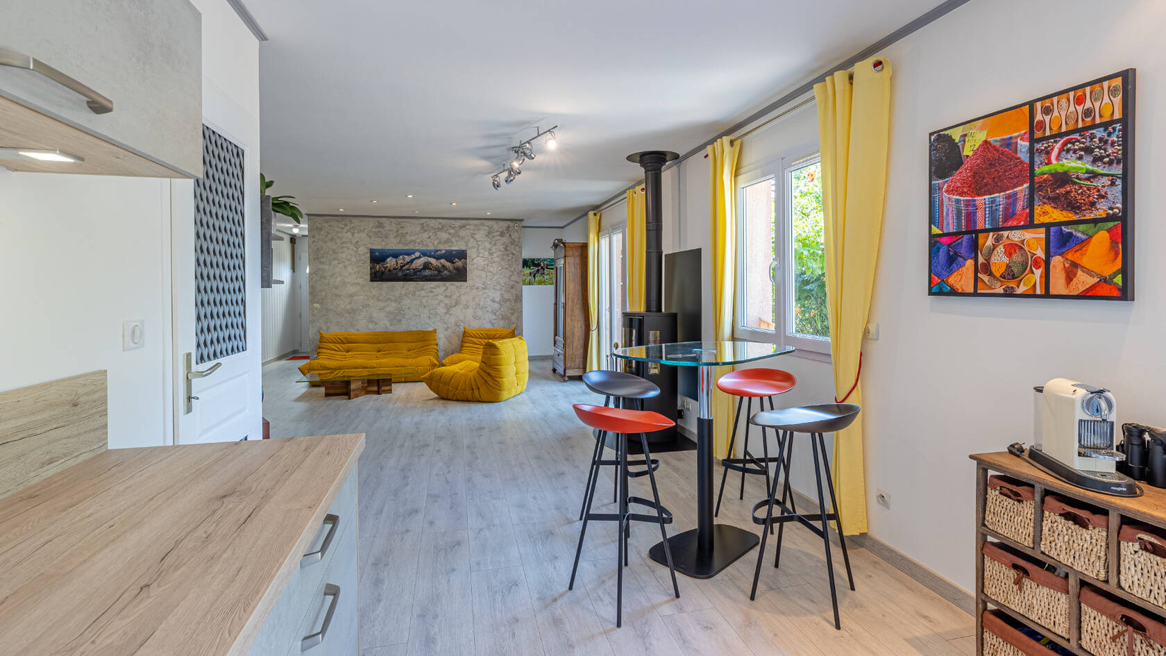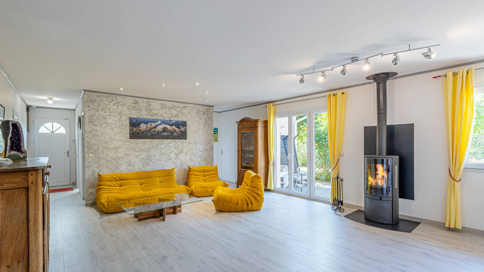 Chauffage: poêle à bois en complément d'une pompe à chaleur air/eau et convecteurs dans les chambres.
