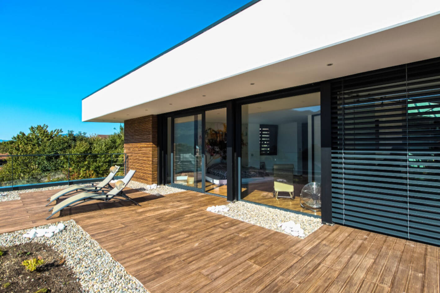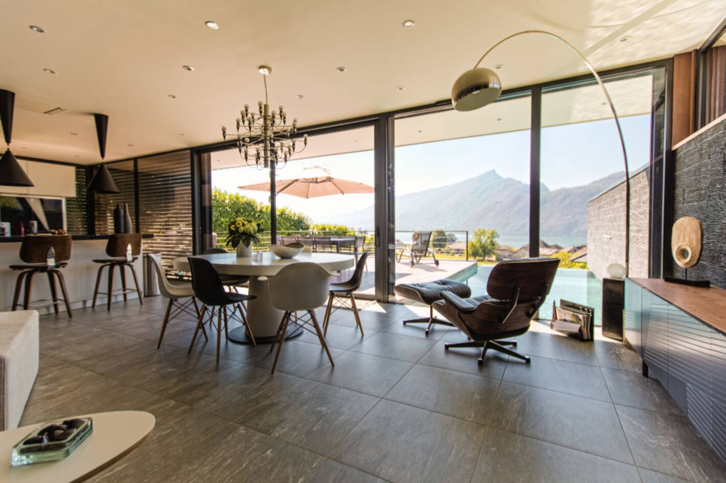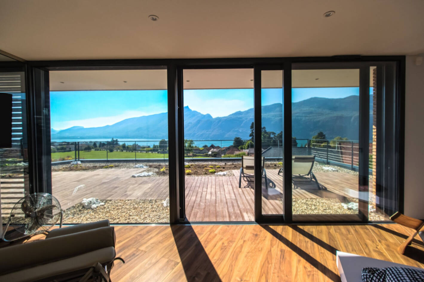 Brison-Saint-Innocent, à 2min d'Aix-Les-Bains, voici une villa contemporaine RT-2012 d'une surface de 320m2. Complétée par 184m2 de terrasses, elle est implantée sur un terrain paysagé de 1050m2.