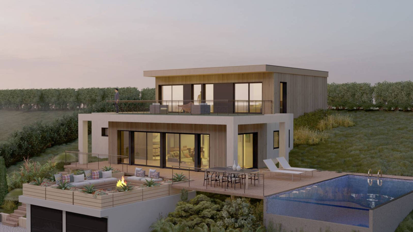 Au calme et avec une vue dégagée sur le lac du Bourget, villa individuelle neuve de 230m2 habitables avec 80m2 d'annexes supplémentaires ( triple garage, buanderie)