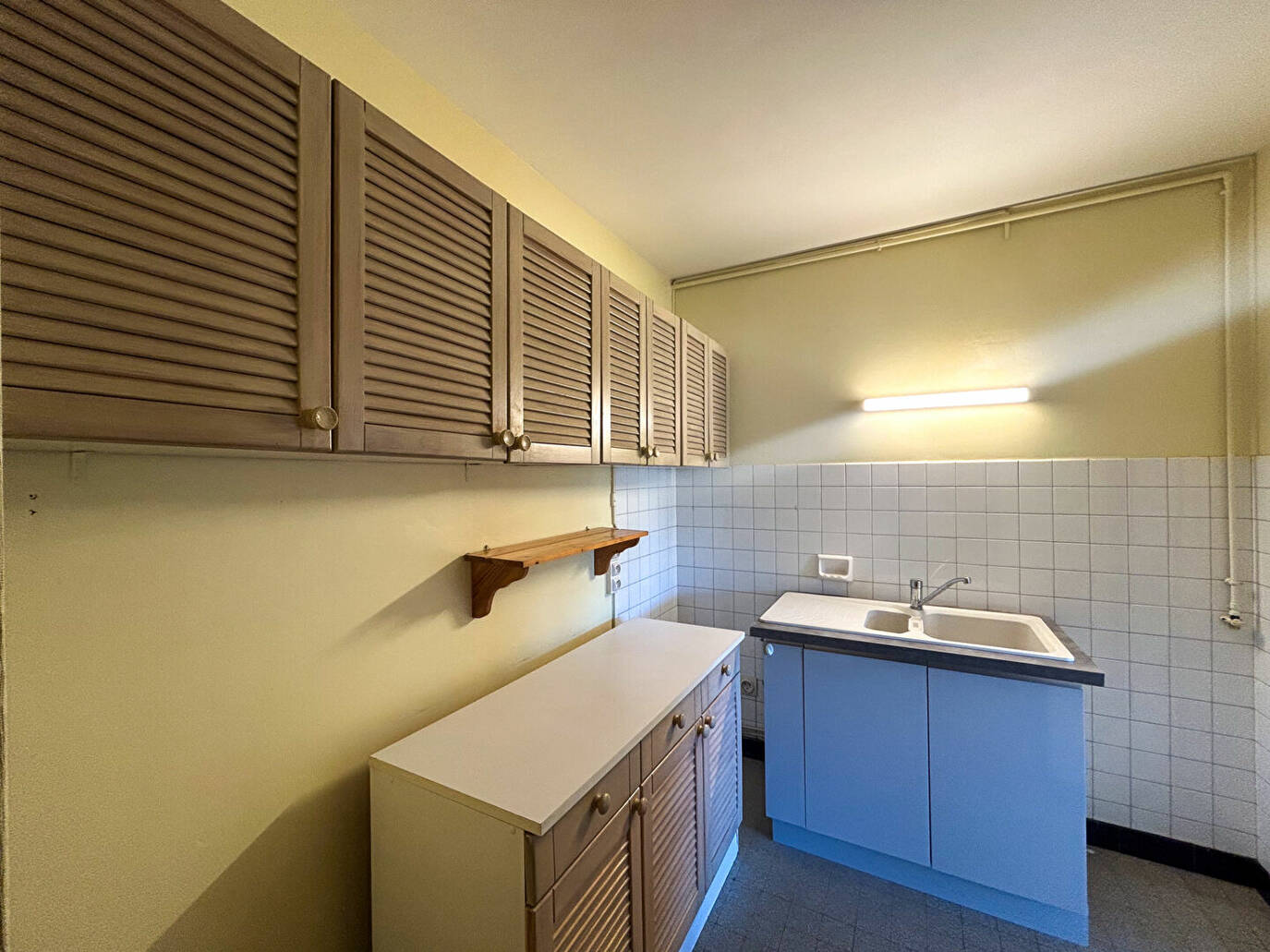 Refait il y a quelques années, il offre des prestations actuelles et se compose d'une cuisine indépendante, d'une belle pièce de vie lumineuse et d'une salle de bain fonctionnelle. L'appartement est équipé de la climatisation, garantissant un confort optimal en été comme en hiver.