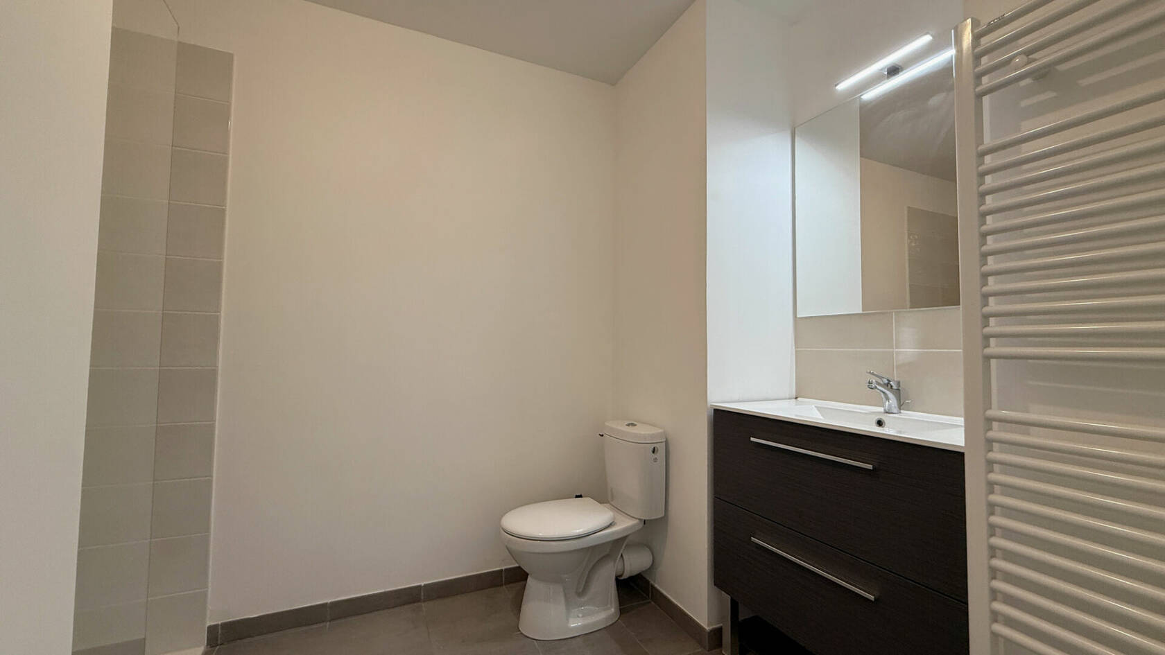 Le bien se compose d'une entrée distribuant un grand séjour cuisine lumineux de plus de 16m², donnant acces à la terrasse de 9,5m2 couverte, exposée SUD, d'une chambre de 12m2 et d'une grande salle de bain avec WC.