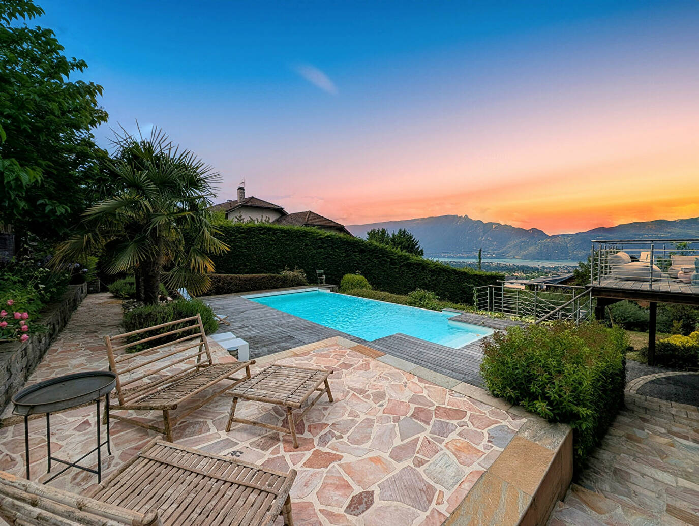 Chalet d'exception avec vue panoramique sur le lac et les montagnes.