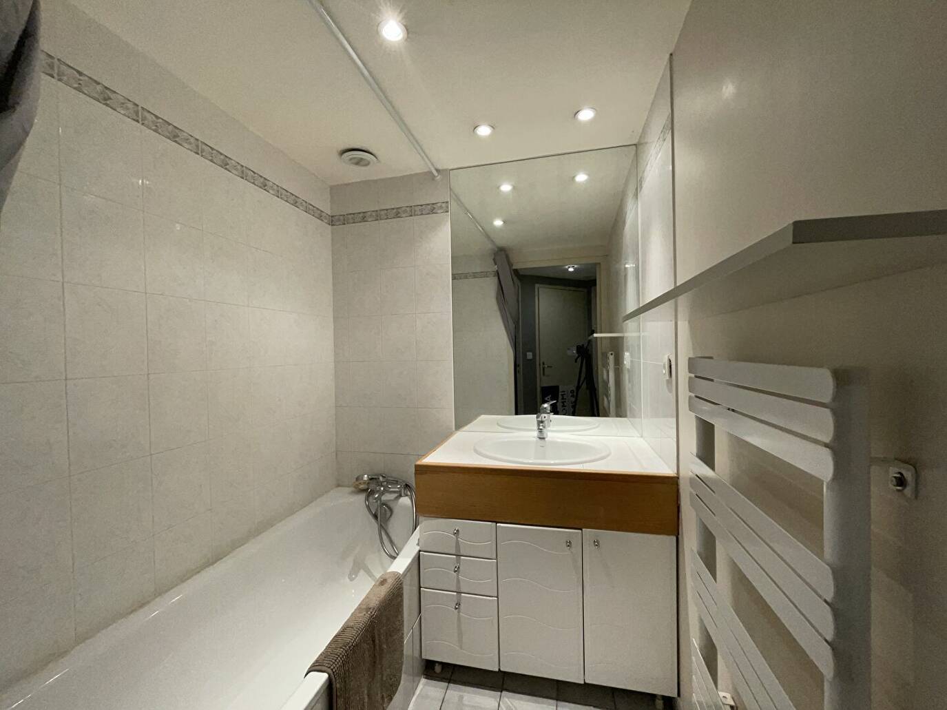 Salle de bains avec baignoire, WC séparé, nombreux rangements, climatisation réversible et chauffage individuel au gaz complètent ce bien d'exception, où chaque détail a été pensé pour votre confort.