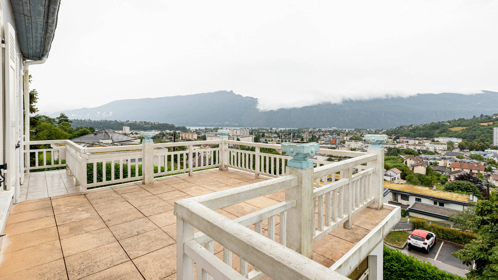 La vue depuis la propriété est entièrement dégagée, offrant un panorama sur la ville, le lac et la Dent du Chat. Malgré sa proximité avec le centre-ville, l'emplacement de la propriété bénéficie d'un environnement calme et paisible.