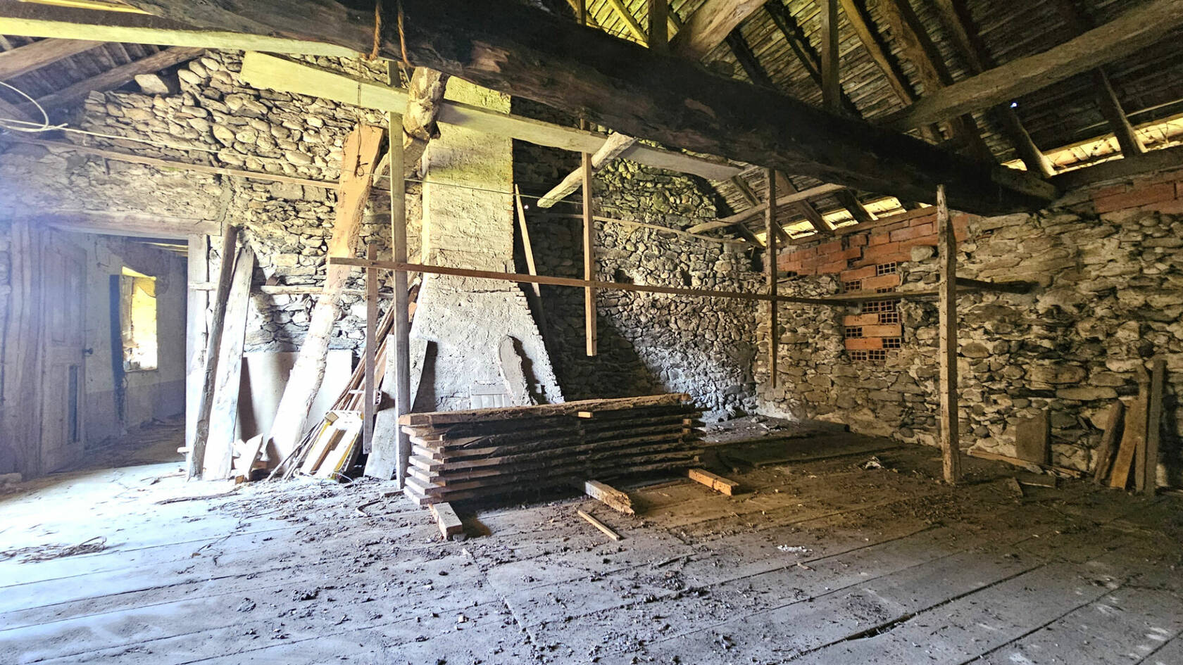 Deux grandes dépendances mitoyennes avec plus de 50m² au sol, une ancienne habitation mitoyenne (à rénover entièrement) avec plus de 50m² au sol (un étage d'environ même surface).