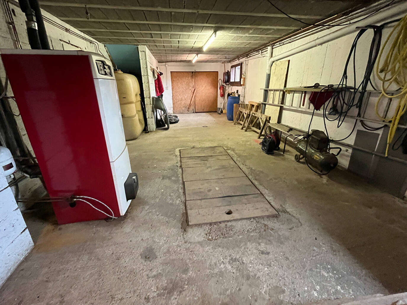 Le sous-sol se compose d'un vaste garage de 52 m², d'un atelier, ainsi que de deux caves, offrant de nombreuses possibilités de stockage ou d'aménagement.