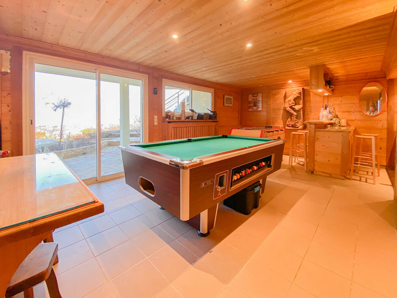 Bâtie sur 2993 m2 de terrain arboré sur les hauteurs de Saint Jorioz, avec vue panoramique sur le lac d'Annecy, composée au rez-de-chaussée d'un hall avec rangements, d'une salle de jeux avec bar, billard et babyfoot, d'un bureau, d'une buanderie, d'une cave à vin réfrigérée, d'une cave, d'un local technique et d'un garage double.