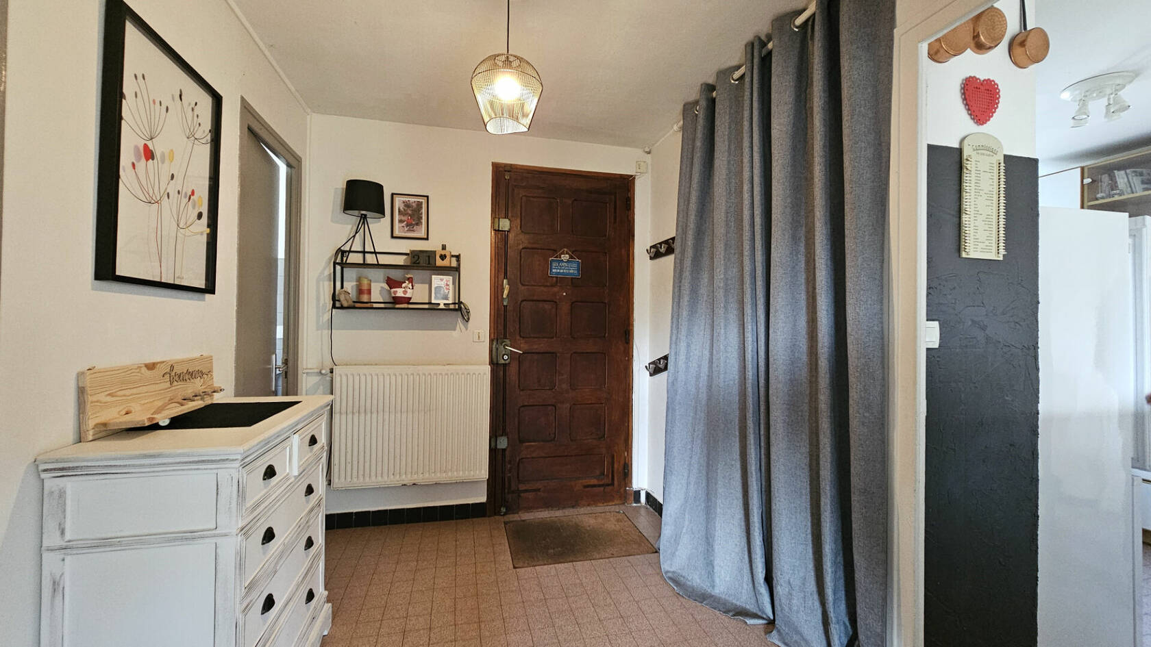 entrée avec placard mural, cuisine équipée semi-ouverte sur salon-salle à manger avec vue panoramique et son balcon, wc individuel.