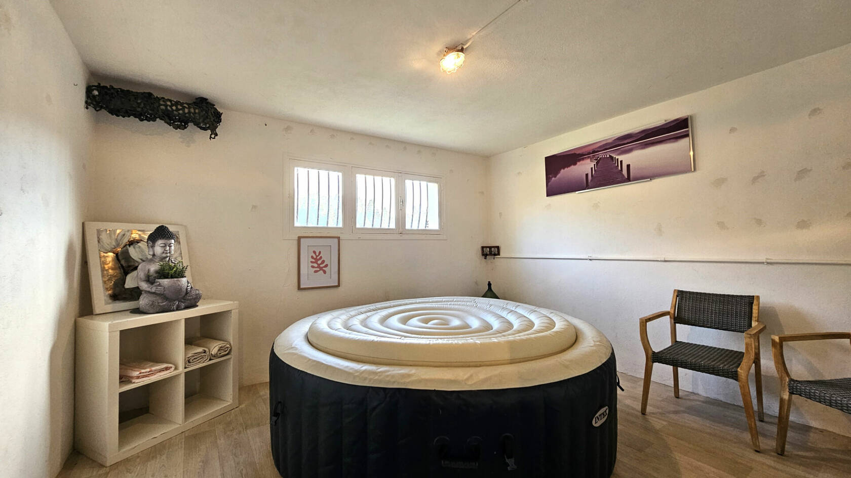 Enfin, en niveau -2, une chaufferie, un espace loisir actuellement avec spa gonflable, un coin cuve à fuel.