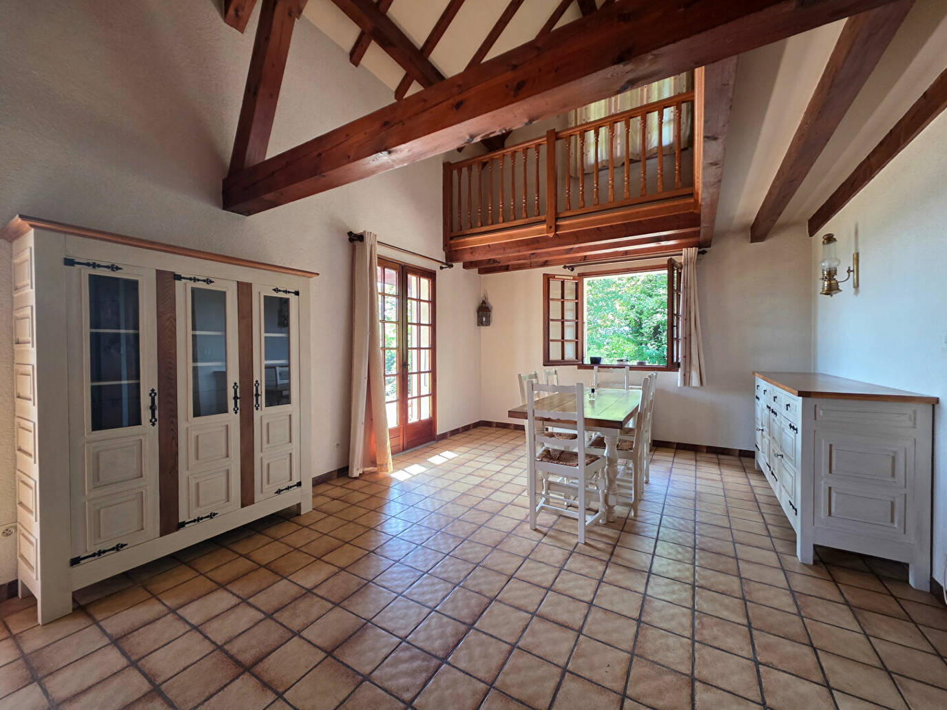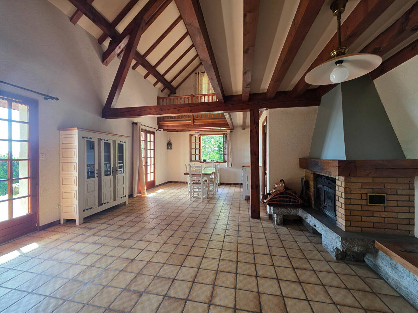 Vous y trouverez une entrée avec placard desservant un salon séjour cathédrale avec cheminée donnant sur une grande terrasse extérieure, cuisine indépendante , WC indépendant .