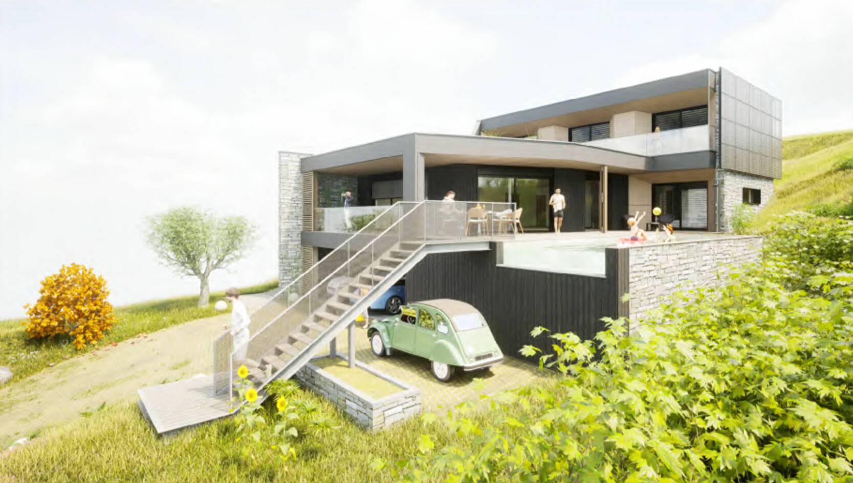 Permettant la construction d'une villa individuelle neuve de 250m2 habitables avec 180m2 d'annexes supplémentaires ( triple garage, car port) et plus de 80m2 de terrasses/balcon