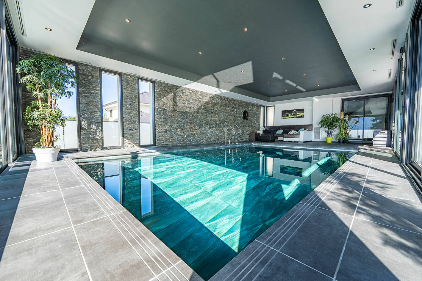 Villa contemporaine avec piscine intérieure et vue lac